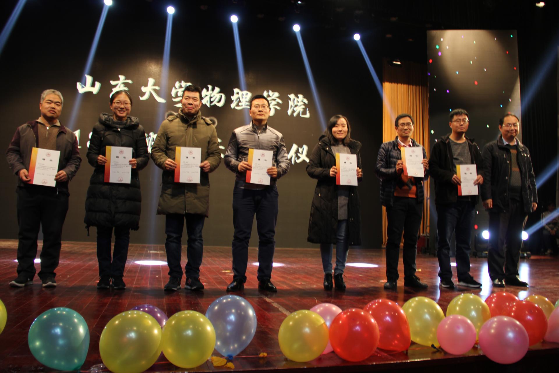 节目表演暂时告一段落。在之后的环节中,苏州EOULU公司的徐峰女士为荣获“伊欧陆奖学金”的2016级本科生胡明哲、赵正朴和刘士强颁奖。陈峰院长表彰了获得“心光校友助学金”的2018级本科生,并为各位班主任老师颁发了聘书。物质奖励只是一种手段,其根本目的是激励同学们拼搏奋斗,再创佳绩。