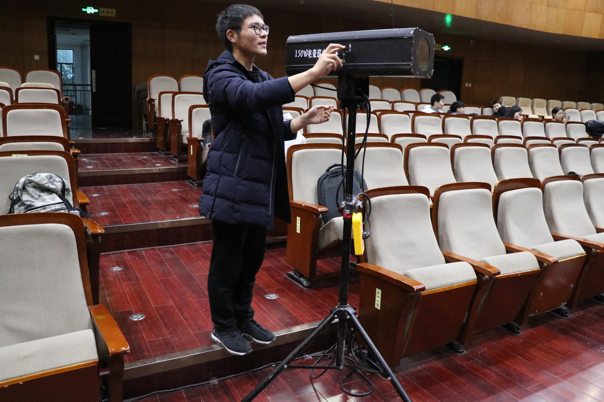 上午9点50分,在开云手机登录入口学生会的全体成员的协作下,晚会现场的准备工作正式开始。在上午的两小时中,同学们对音乐厅会场进行了精心的布置,装饰好了舞台,架好了相机和聚光灯,摆好了音响设备,为下午的两次彩排和晚上7点的晚会做好了充分的硬件准备。