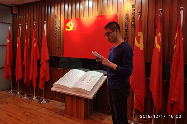 12月17日,开云手机登录入口2019年学生党员入党宣誓仪式在知新楼C座二楼党员活动室举行。学院组织员于新好出席本次仪式。仪式由学院本科生党支部书记高世杰主持,2019级博士生党支部书记张彬担任领誓人。