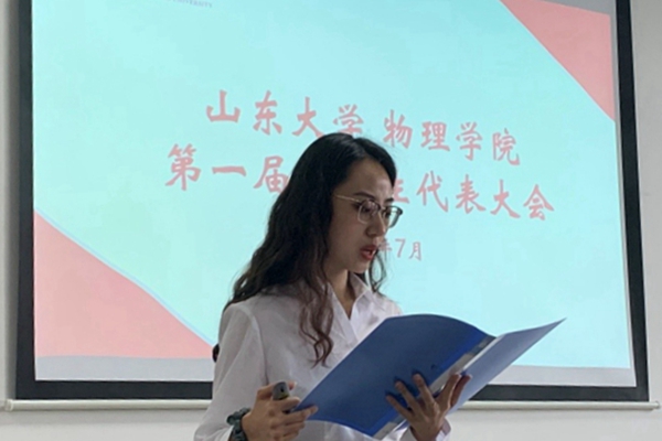 伴随着雄伟的国歌声,研代会正式拉开序幕。徐舸带领与会代表集体学习了习近平总书记在庆祝中国共产党成立100周年大会上的讲话,倡导全院学子以史为鉴、开创未来,从中国共产党的百年奋斗中汲取力量,在新的征程上更加坚定、更加自觉地牢记初心使命、开创美好未来。辛莹代表学院对大会的召开表示祝贺,对过去一年研究生会的工作给予了肯定与鼓励,提出要梳理工作、总结经验、反思问题、开拓思路,并对全体研代会成员、学生干部和即将产生的新一届物院研究生会主席团成员提出三点希望,一是要坚定理想信念,二是要坚持服务同学,三是要做好榜样表率,在实践中打造精干、高效、精品、一流的研究生会,团结凝聚青年学子,更好服务学生成长成才。研究生会副主席刘璇以《凝心聚力,务实求真 乐学敏思创新笃行,打造多样物院风采》为题作2020-2021学年研究生会工作报告,从全面深化思想引领、全面宣传红色文化、全面升级服务意识、全面发展个人素养、全面完善管理机制五个板块梳理了过去一年的工作。研究生会副主席刘晨阳向与会代表作《开云手机登录入口第一届研究生代表大会提案征集情况报告》,分基础设施类、课余生活类、学业学习类三大部分汇报了会前征集的11条提案报告,提出了下一学年学院研究生权益工作的思路举措。随后,3位学院研究生会主席团候选人分别从工作总结、竞选优势、岗位认知、未来规划等四个方面进行了竞职答辩,与会代表秉持民主、公平、公正的原则,采用无记名投票的方式选举产生了开云手机登录入口新一届研究生会主席团成员。大会在与会代表齐唱山东大学校歌中闭幕。
