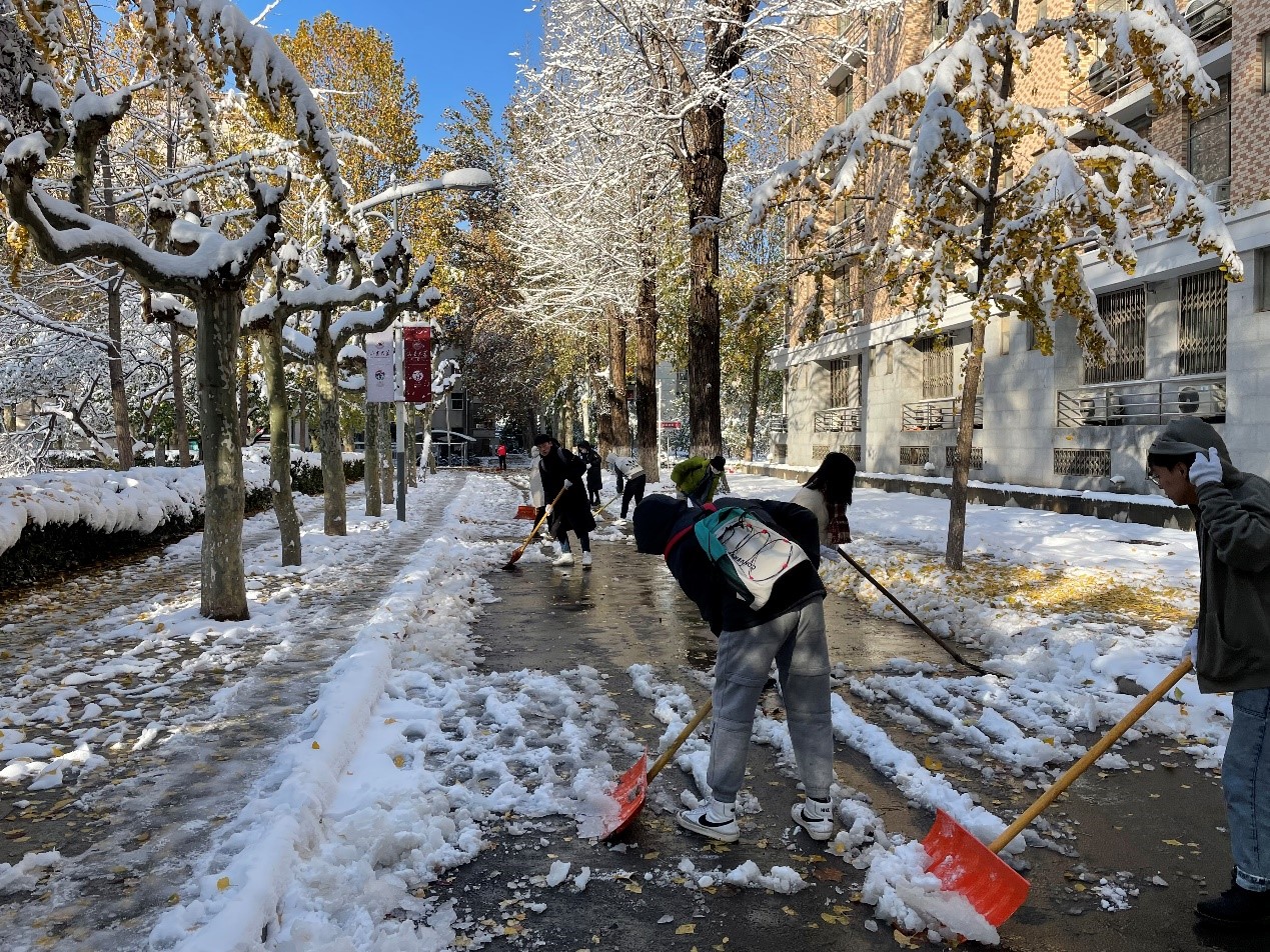 为扎实推进党史学习教育走深走实,开云手机登录入口组织开展形式多样、内容丰富的“我为群众办实事”实践活动,多措并举为师生办实事暖心事,使党史学习教育成果真正惠及群众。11月7日,济南突降暴雪,给在校师生的学习生活带来了不便,存在诸多安全隐患。开云手机登录入口发出“扫雪送温暖,除冰我先行”的倡议,本、研各党团支部、各班级、青年志愿者纷纷报名响应,积极参与到清雪除冰工作当中。在7日、8日两天时间里,大家做好保暖防疫准备,不惧严寒,奋力苦干,使用各样工具清扫积雪,为老师同学出行尽一份力。