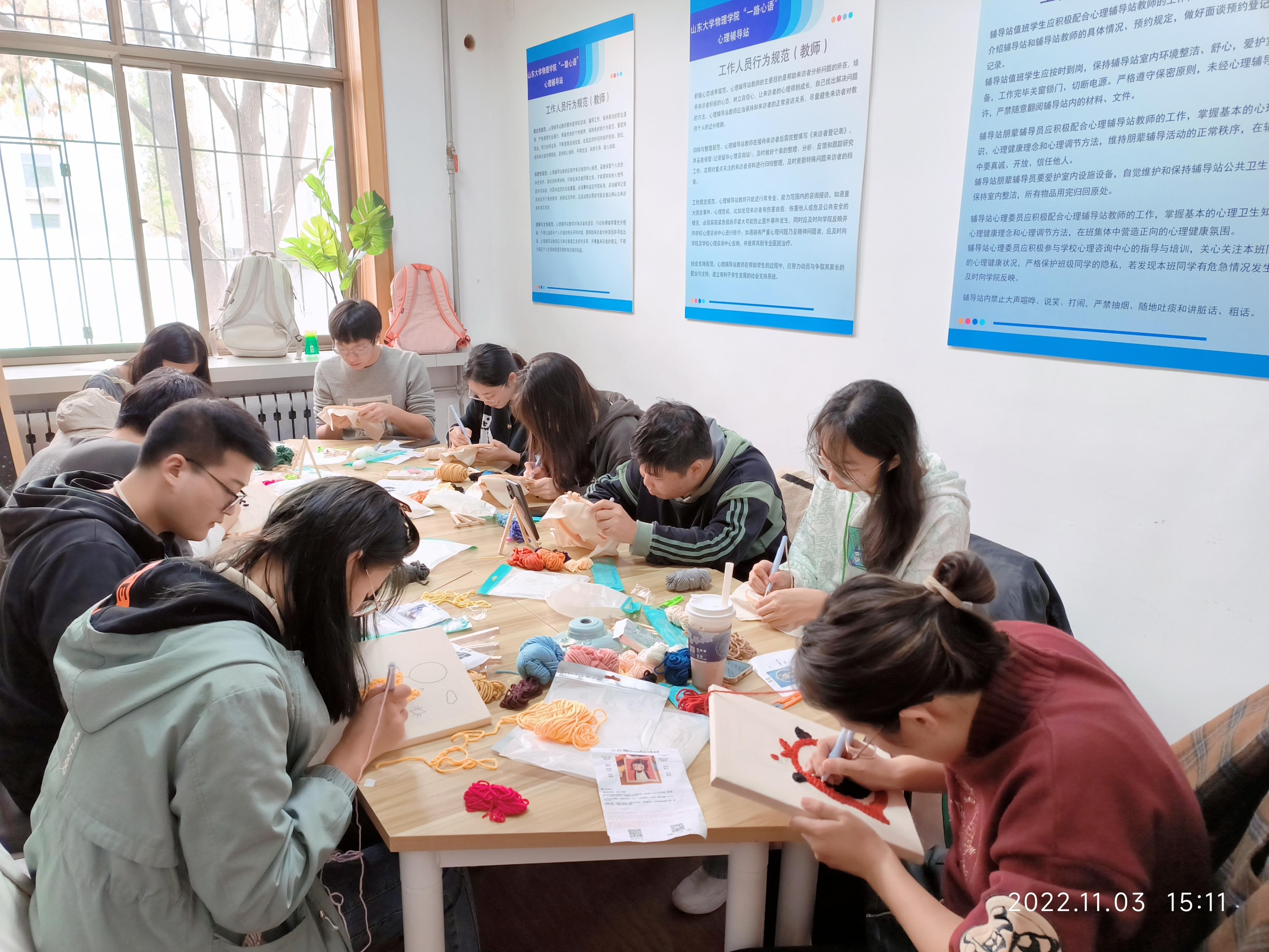 11月3日、11月10日,开云手机登录入口“一路心语”心理辅导站分别举办“向美而行”编织、绘画主题心理沙龙。辅导站教师曹晓习担任沙龙发起人,每期十余位学生参与活动。“向美而行”编织、绘画主题心理沙龙报名对象面向全院学生,尤其在接收报名时优先考虑家庭经济困难、学业困难等同学,旨在通过编织、绘画的方式带领参与同学打开心灵、认识自我,表达情绪、疗愈身心。参与同学无需具备任何编织、绘画技巧,通过手工制作和画笔表达想法...