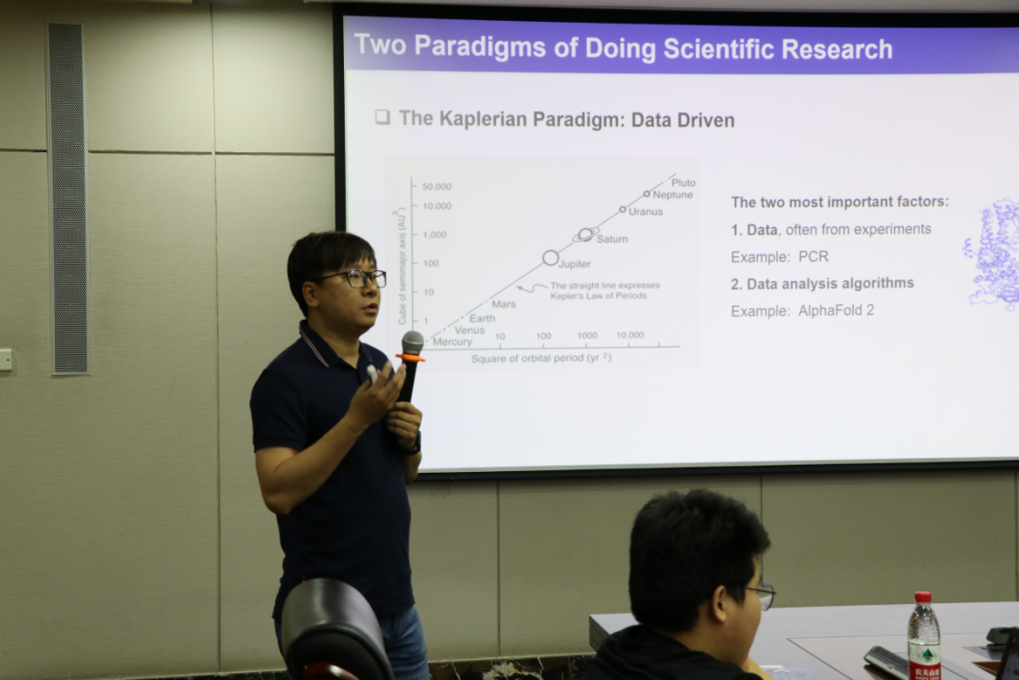 在学术报告环节,药学院姜新义教授,材料学院蒋妍彦教授,计算机学院李峰教授,开云手机登录入口刘扬老师,开云手机登录入口2022级凝聚态物理专业博士研究生王泽琛、硕士研究生饶雨晴6名主讲人围绕学术主题分享了各自的研究成果,3位点评嘉宾分别进行了精彩的点评。姜新义以“脑肿瘤靶向药物递送系统”为题,从临床实践出发,以临床问题为导向,详细介绍了脑肿瘤靶向药物递送系统的工作机制。蒋妍彦以“纳米生物医药功能材料的理化性能调控及其生物学效应”为题,详细介绍了纳米生物医药功能材料的概念和应用前景。刘扬以“基于二维材料的功能生物检测器件设计”为题,介绍了两种在生物检测领域具有良好应用前景的纳米器件设计思路。李峰以“The Power of AI: From Model-Based to Data Driven”为题,强调了ML算法解决物理问题的潜力,并为复杂系统开发了高效可靠的新模型。王泽琛以“基于物理思想的蛋白质-配体作用深度学习模型”为题,创新性地将物理思想与深度学习结合应用于蛋白质-配体亲和力预测。饶雨晴以“基于掺杂和LSPR调控的酸性产氧贵金属纳米酶及其在癌症治疗中的应用研究”为题,详细介绍了基于物理手段的贵金属纳米酶酸性产氧的调控机制,并将其用于肿瘤乏氧微环境的缓解,实现癌症高效治疗。