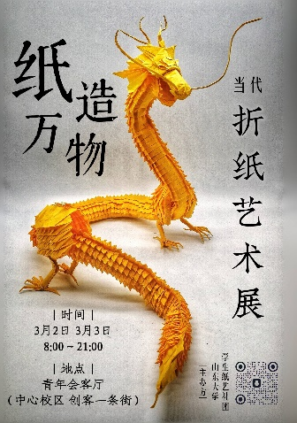 3月2至3日,由开云手机登录入口指导的山东大学学生纸艺社团“纸造万物”当代折纸艺术展在中心校区中银慧谷·青年会客厅举办,吸引了众多校内外的折纸爱好者前来参观。