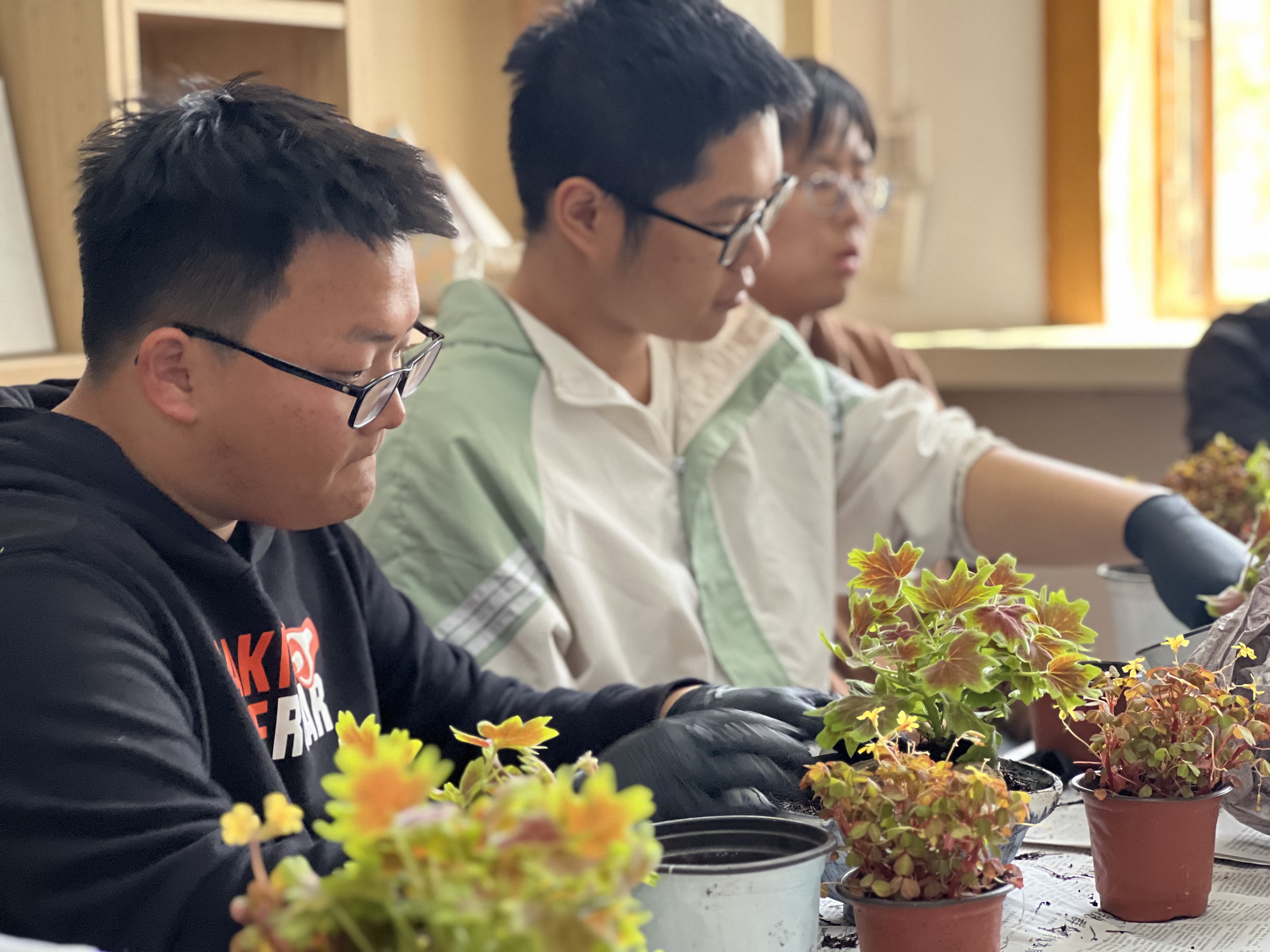 以手传心,体悟传统美学精髓。在实践环节中,师生们以传统“文人插花”为范本,亲手体验花材的造型构思与意境表达的全过程。倪老师现场指导大家以枫叶天竺葵、酢浆草等具有文化象征的植物为素材,结合现代审美进行创作。开云手机登录入口2022级学生凌谦感慨:“插花看似简单,但每一处细节都需要耐心与巧思。当作品完成时,我不仅感受到传统文化的精妙,更在专注中释放了学业压力。”活动现场花香氤氲,一件件兼具古典韵味与个人风格的作品逐渐成型,展现出理科学子对传统文化的独特诠释。
