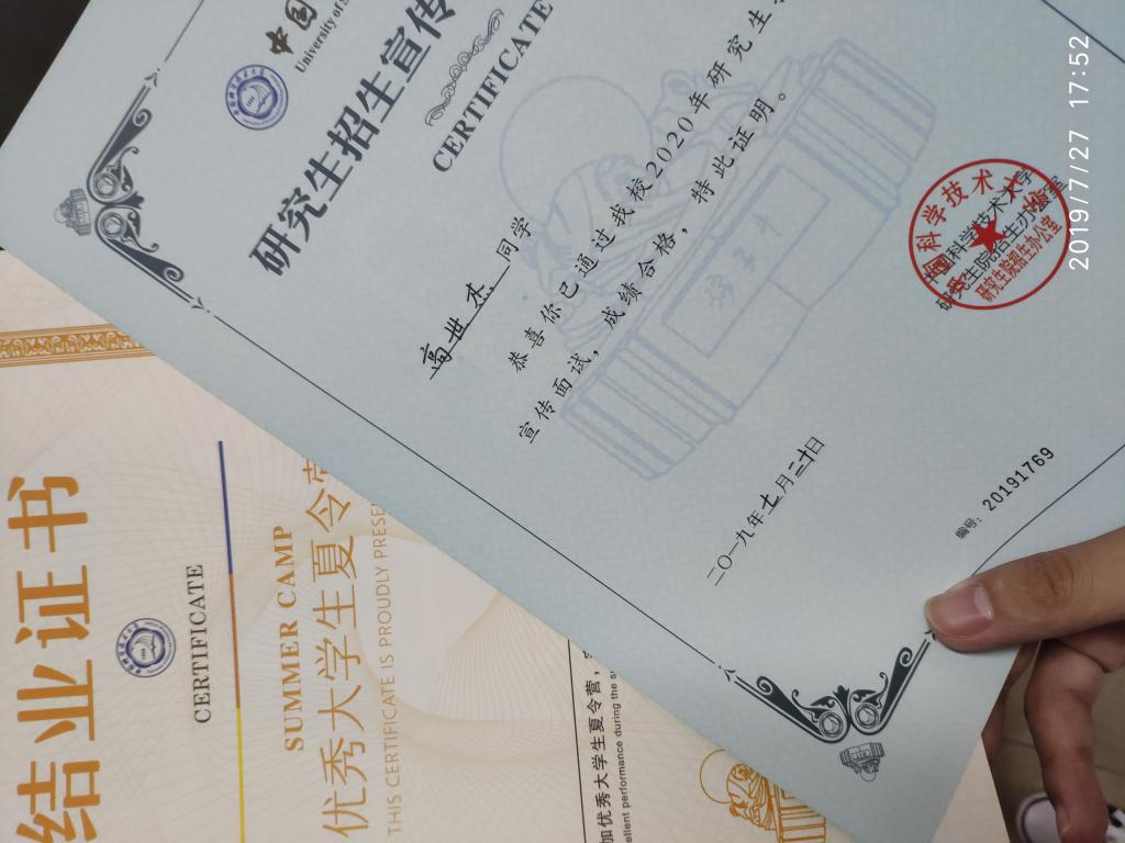 对于学习,大一刚入学,高中也没参加过物理竞赛,入学考试的失利却让我连面试基地班、英才班的机会都没有,但是我相信这不是我的选择。在普通班的学习中,我取得了我想要的成绩,终于在大二的班级滚动中,以普通班综合排名第一的成绩顺利地进入了基地班。在基地班我也是一直紧追,最后以基地班综合排名第一的成绩获得了保研资格。对于学习上,我觉着最重要的是上课认真听课并做笔记。上课讲的你肯定不能一下听懂,所以一定要记下来,并及时复习(可惜到了大三我才明白这个道理,但不晚)。大学的时间也应该更多地放在学习上,虽然毕业之后并不一定会用到现在学到的知识,但是我们更应该明白学习是一个过程,这个过程让我们明白怎么去做事情,怎么去处理遇到的问题。