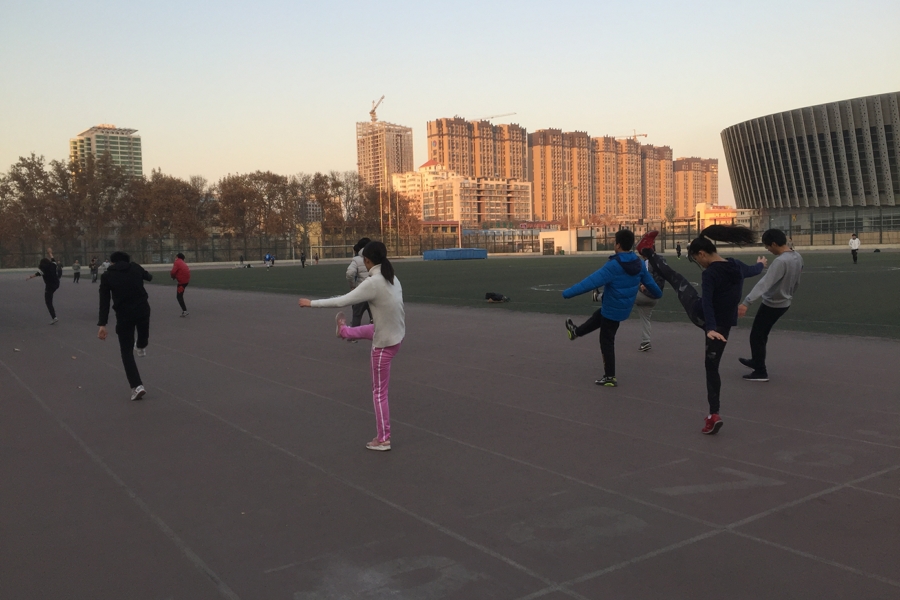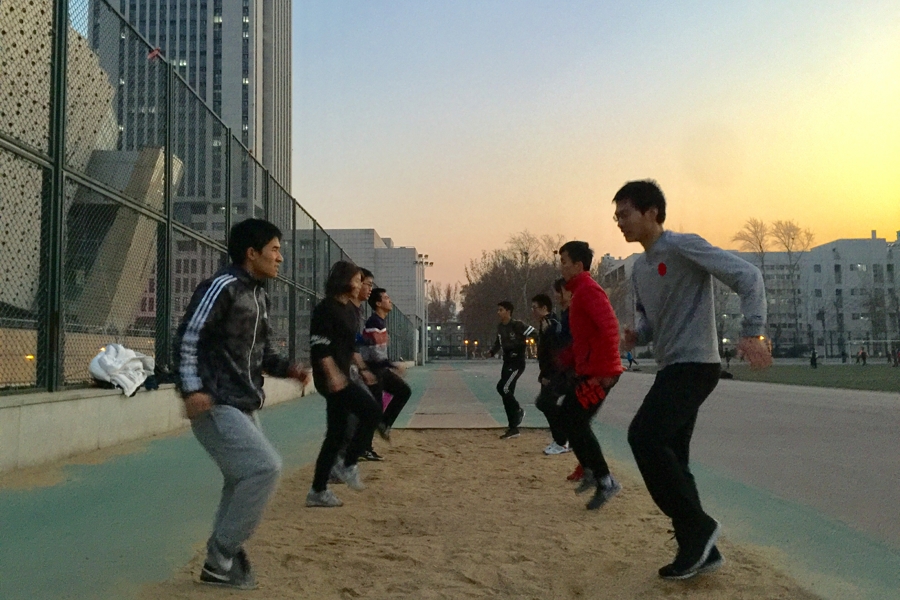 2017年12月19日下午4点到6点,田径队在中心校区操场进行了日常的冬训活动。自从11月16日开始,田径队的冬训一直在进行着。今天无论短中长跑还是跳队,训练科目都为素质,以高抬腿、抱膝跳、仰卧起坐、波比跳为主,中间穿插冲刺跑。相比之前的素质训练,不但每组动作的次数有所增加,组数也从3加到了4。虽然天气越来越寒冷,操场上的人也越来越少,依然挡不住训练的热情,两组过后队员们更加进入状态,后面两组完成的似乎质量更高...