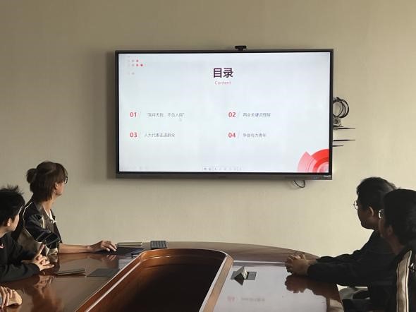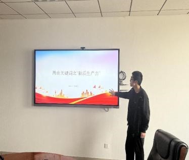 接下来,与会团员同学一同观看《什么是起全国两会?》及《两会调查十大热词,传递民生“最期盼”》等视频,深入学习“两会”的意义及2024年“两会”的主要关键词。2024年两会关键词不仅有的“依法治国”“就业”“乡村振兴”“医疗”“养老”等一直关注的话题,也有“高质量发展”“新质生产力”“大国外交”等近年的新关键词。借此机会,同学们可以及时学习跟进时代热词,明白当下的中国更关注什么、未来的中国更需要什么。